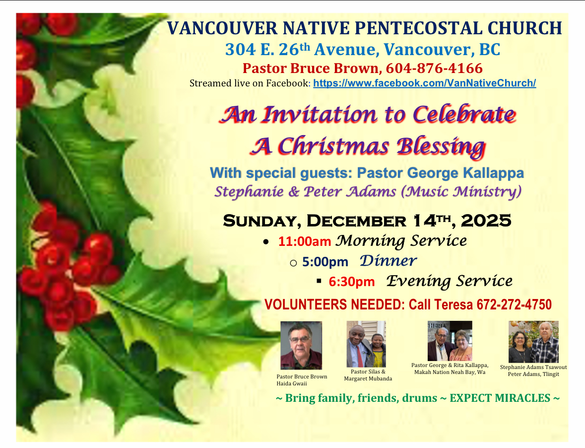 Vancouver Native Pentecostal Church (VNPC) is an Indigenous operated registered non-profit organization. VNPC was established and incorporated in 1985.